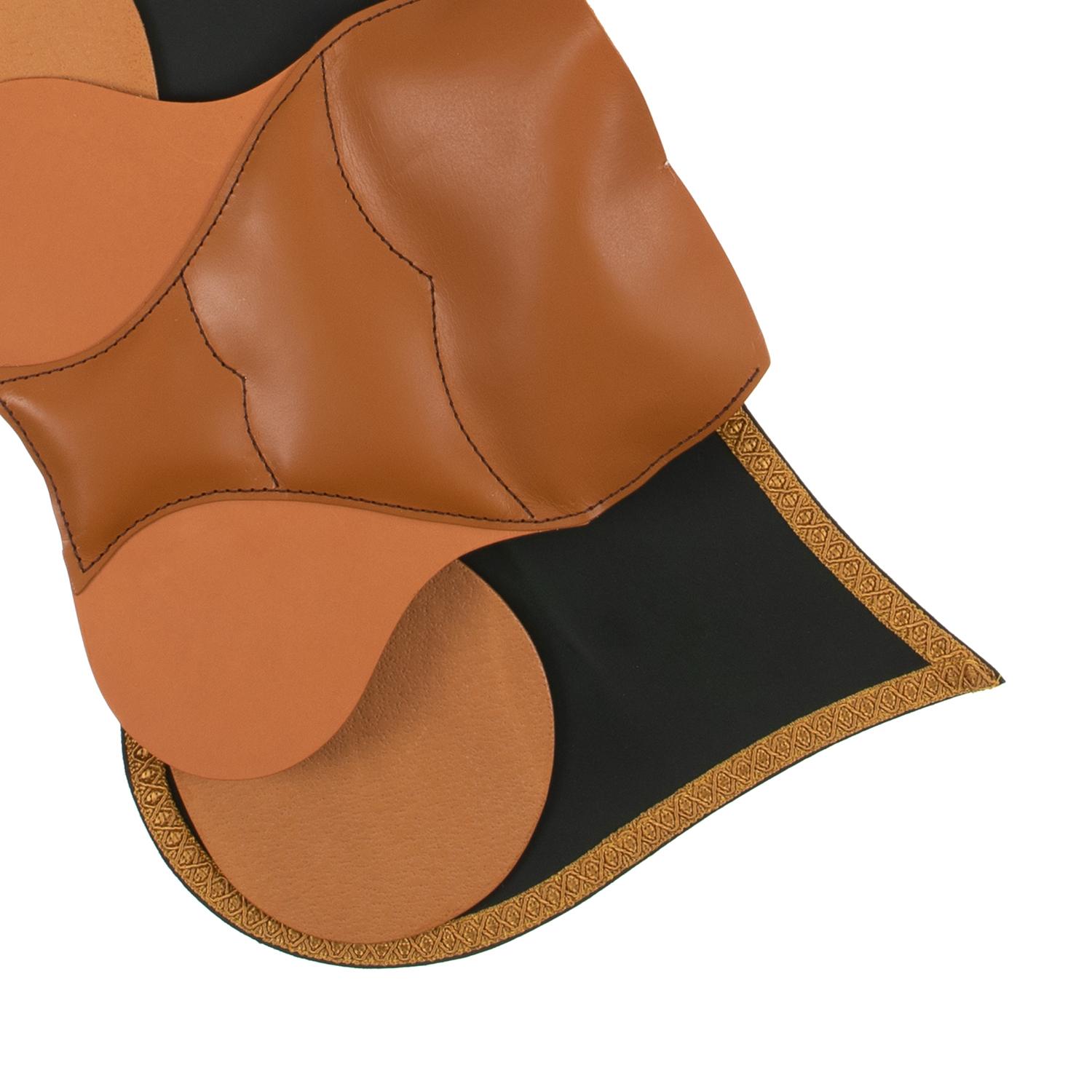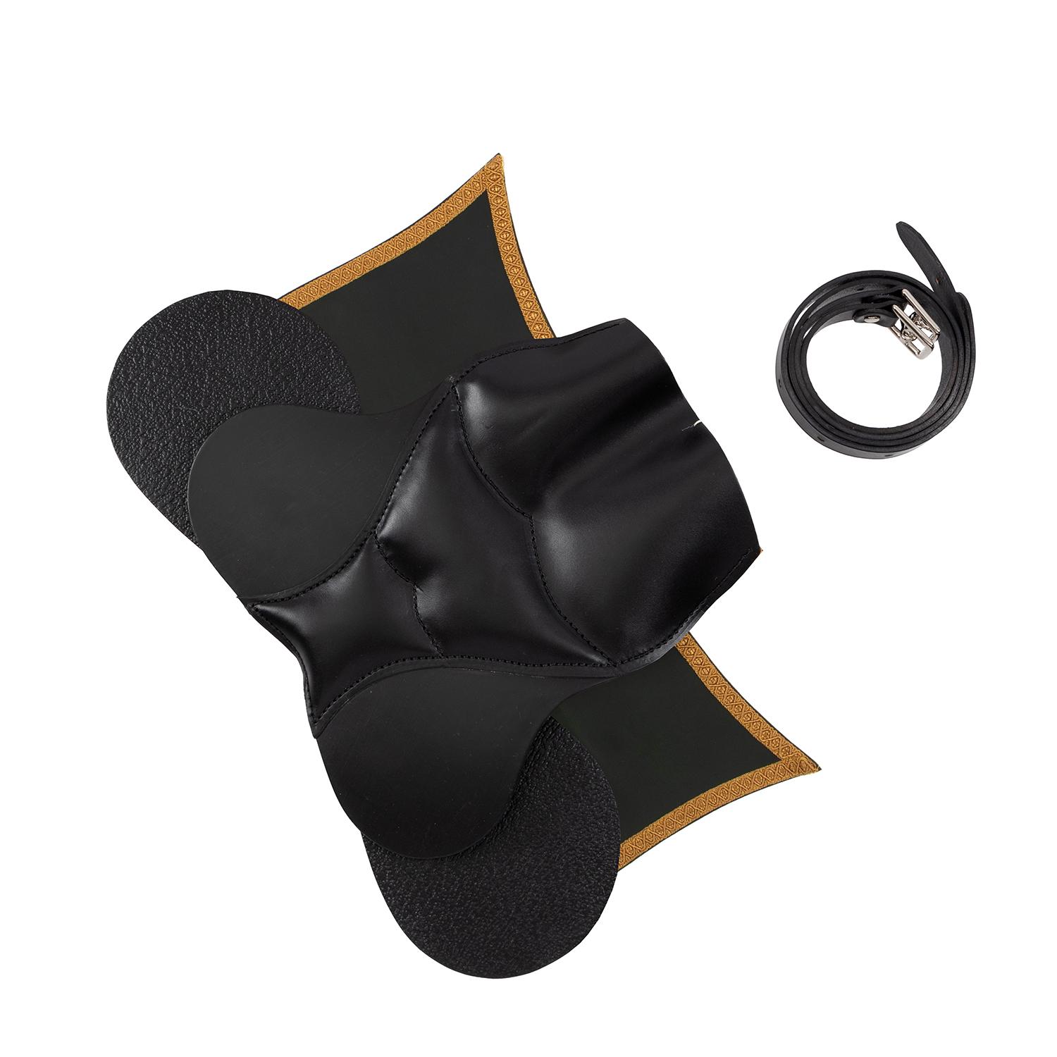 Deluxe leather 'B' saddle made up ready to fix with wire nails & brass domes (not included). Skirts are sewn to soft panel hide seat which is stitched crosswise & stuffed with cotton padding. Complete with hog print leather flaps, saddlecloths edged with fancy braid, cantle & a pair of stirrup leathers. Fitting instructions included.