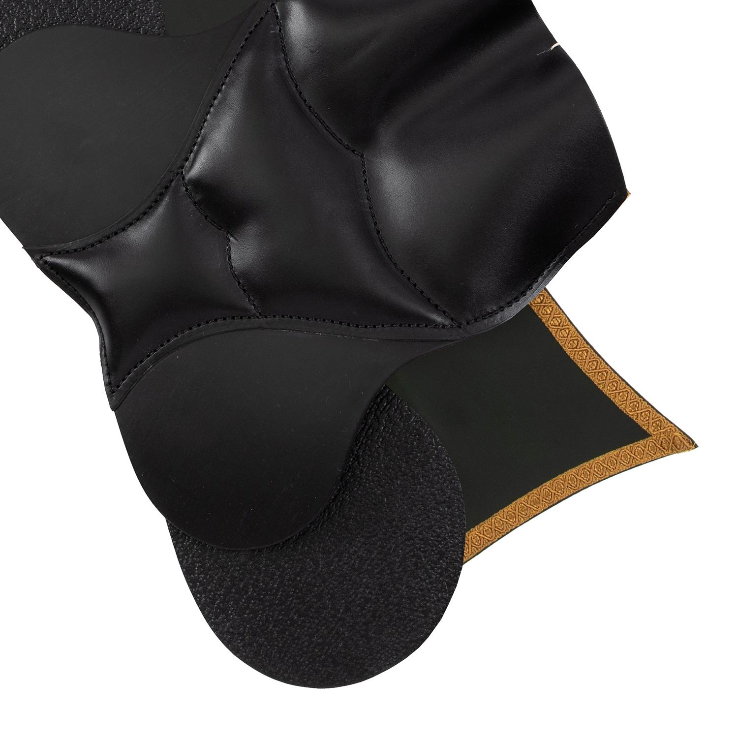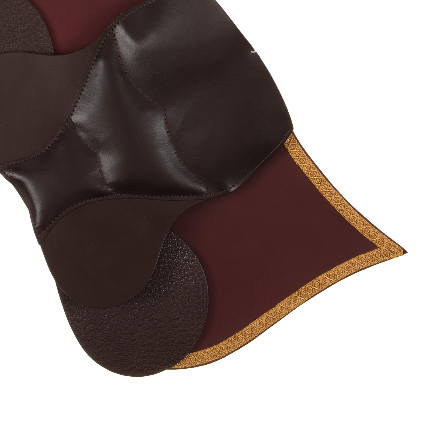 Deluxe leather 'B' saddle made up ready to fix with wire nails & brass domes (not included). Skirts are sewn to soft panel hide seat which is stitched crosswise & stuffed with cotton padding. Complete with hog print leather flaps, saddlecloths edged with fancy braid, cantle & a pair of stirrup leathers. Fitting instructions included.