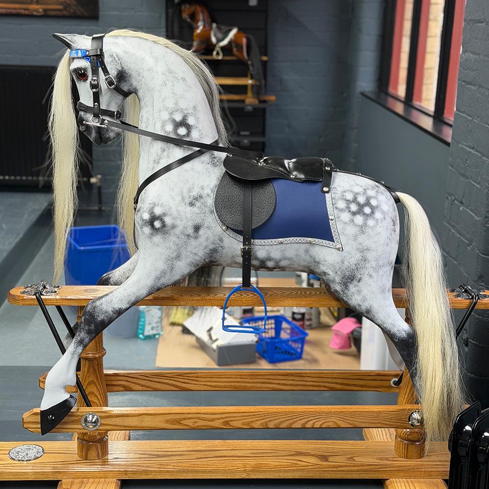 A modern take on the traditional dapple grey, designed to reflect a more realistic appearance. The classic dapple grey heritage dates back to the late 1800’s, made distinguished by master craftsmen such as FH Ayres and Lines Bros. The wooden structure continues to be meticulously assembled and carved following time-honored techniques.