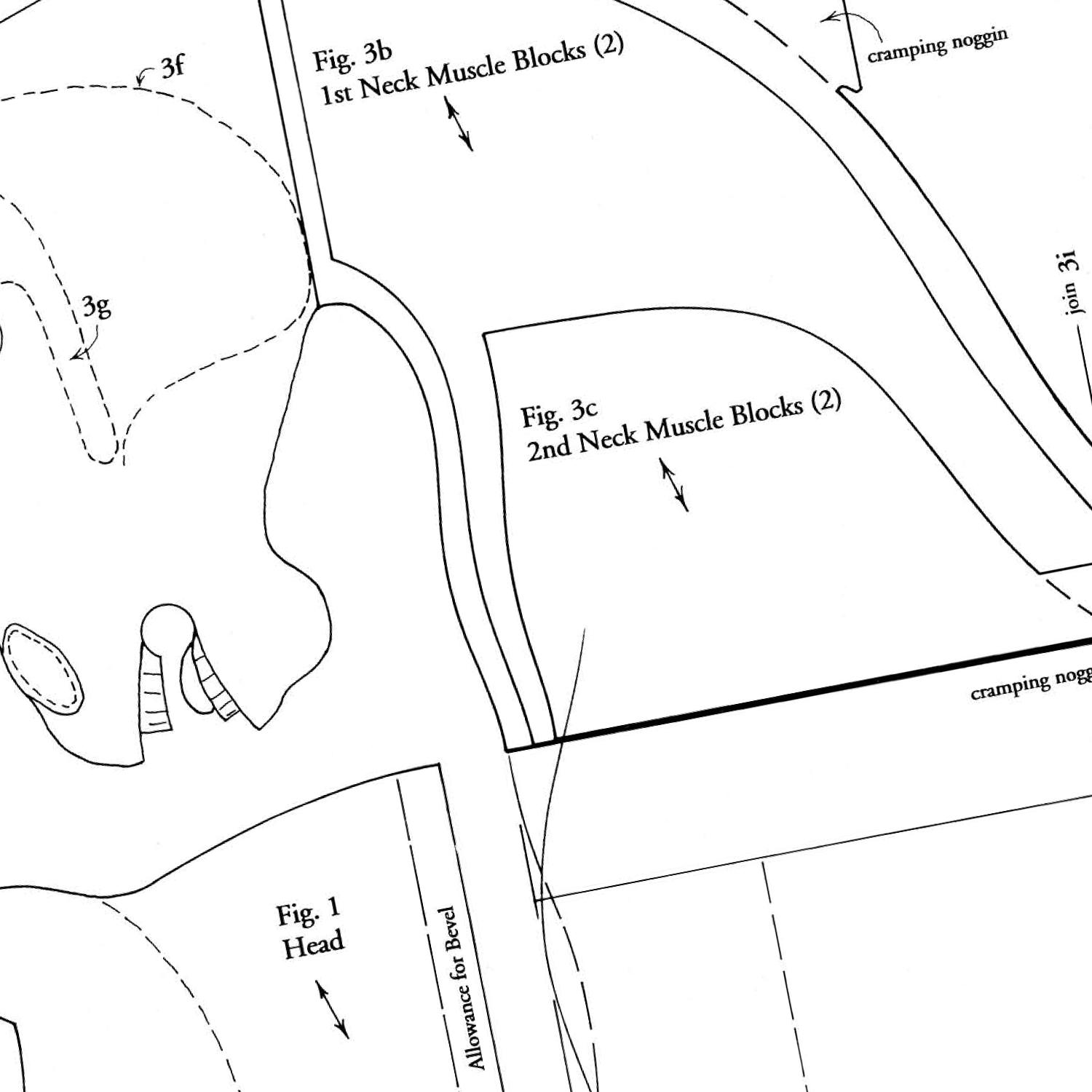 This plan (aimed at more experienced woodworkers) contains actual size drawings for attractively raised & elongated Medium & Large heads. It is for use in conjunction with Medium (Plan 109) or Large (Plan 110) & also includes alternative neck muscle blocks which allow the angling of the head to be exaggerated, a further enhancement. A comparison videos showing a thoroughbred head vs a standard head design can be found on our YouTube channel also found on our useful links page above.